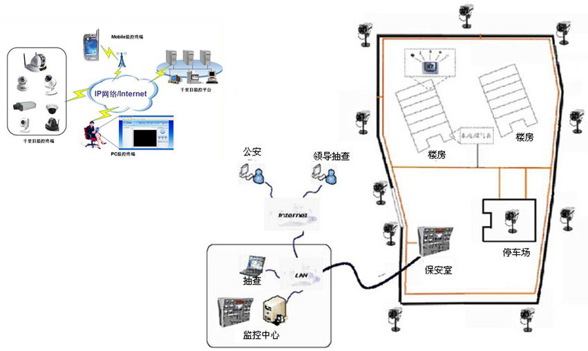 小區(qū)/別墅網(wǎng)絡(luò)視頻監(jiān)控示意圖