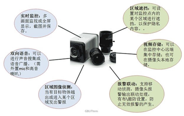 對居民小區(qū)的重要部位,即主要出入口,樓道及重要房間安裝高清晰彩色攝像機(jī)(攝像機(jī)頭探),攝像機(jī)將所監(jiān)控的圖像傳送到后端監(jiān)控主機(jī)上,并將圖像存儲到計(jì)算機(jī)硬盤上;通過軟件控制云臺上下左右的運(yùn)動(dòng),鏡頭的焦距,變倍,通過網(wǎng)絡(luò)實(shí)現(xiàn)遠(yuǎn)程傳輸與控制。