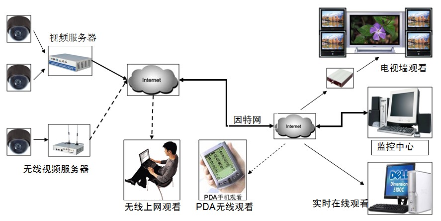 傳統(tǒng)監(jiān)控系統(tǒng)中,每臺DVR最多只能管理32路圖像。而網(wǎng)絡(luò)視頻監(jiān)控則大大跨越了這個(gè)限制,一臺電腦主機(jī)可以管理上千路圖像,充分發(fā)揮出集中管理的優(yōu)勢。